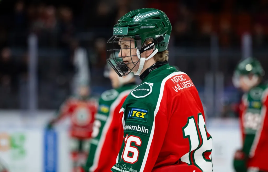 Frölundas Bosse Meijer inför ishockeymatchen i SHL mellan Frölunda och Skellefteå den 22 januari 2026 i Göteborg.