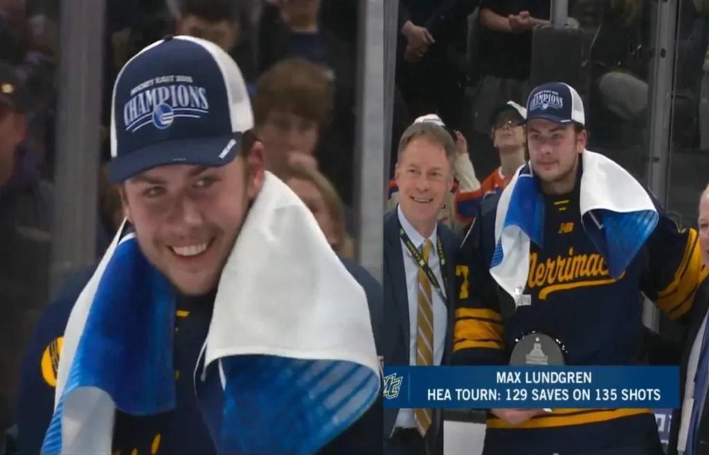 De tidigare Södertälje– respektive Rögle-spelarna har varit med och tagit hem Hockey East-titeln. Max Lundgren blev dessutom utsedd till MVP efter att ha räddat 129 av 135 skott på väg mot titeln.
