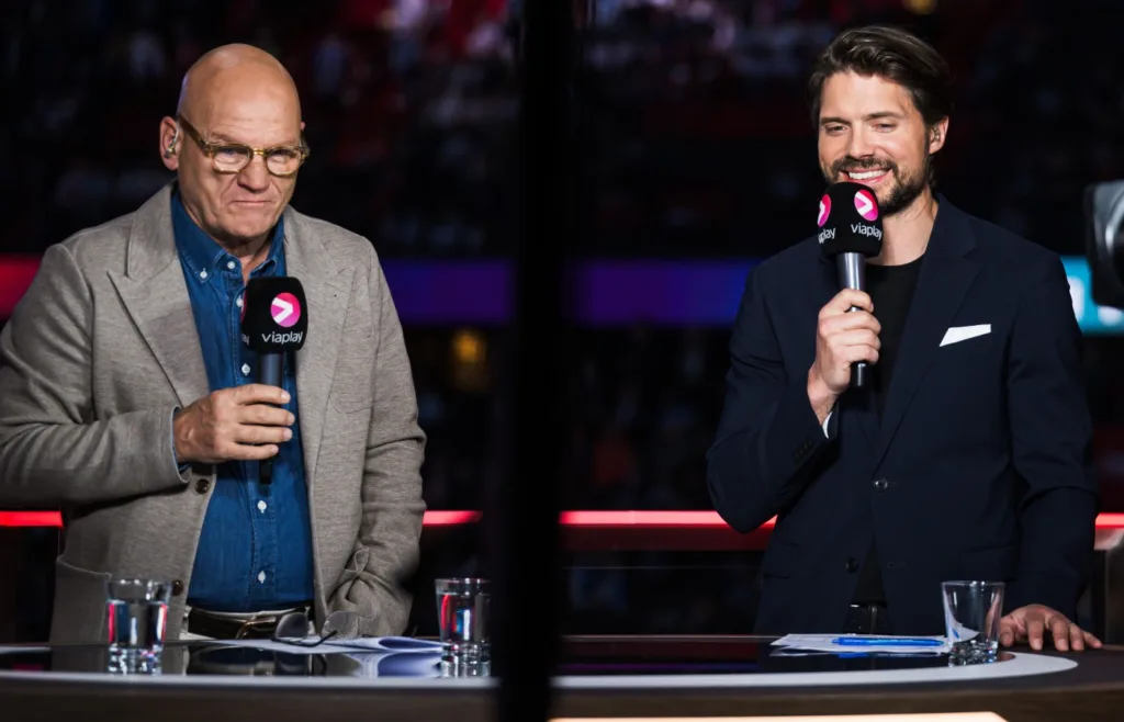 Håkan Södergren och Jacob Josefson tillsammans under Viaplays sändningar från hockey-VM i våras.