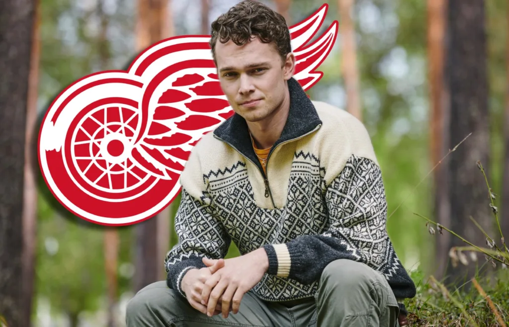 – Jag skulle vilja påstå att jag själv hittade dem, skrattar han. Men jag vet att det var när jag spelade NHL ’06 när jag var fem år och mötte pappa. Pappa var ett gammalt Maple Leafs-fan. Jag tänker att han bara ville att jag skulle välja ett Original Six-lag och så fanns det många svenskar där. Så han indoktrinerade mig in i Red Wings.