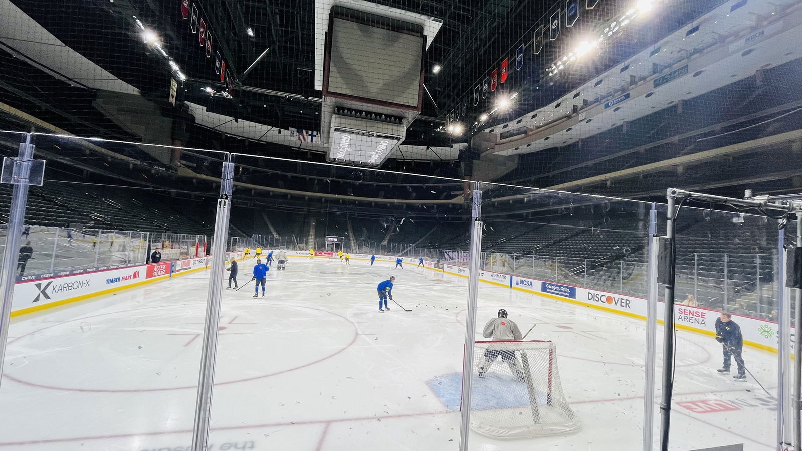 Sverige klev på is lite senare än tänkt här i St. Paul. De flesta är ute, men man meddelar att Juustovaara, Eklund, Pettersson och Gästrin ”kör off ice”