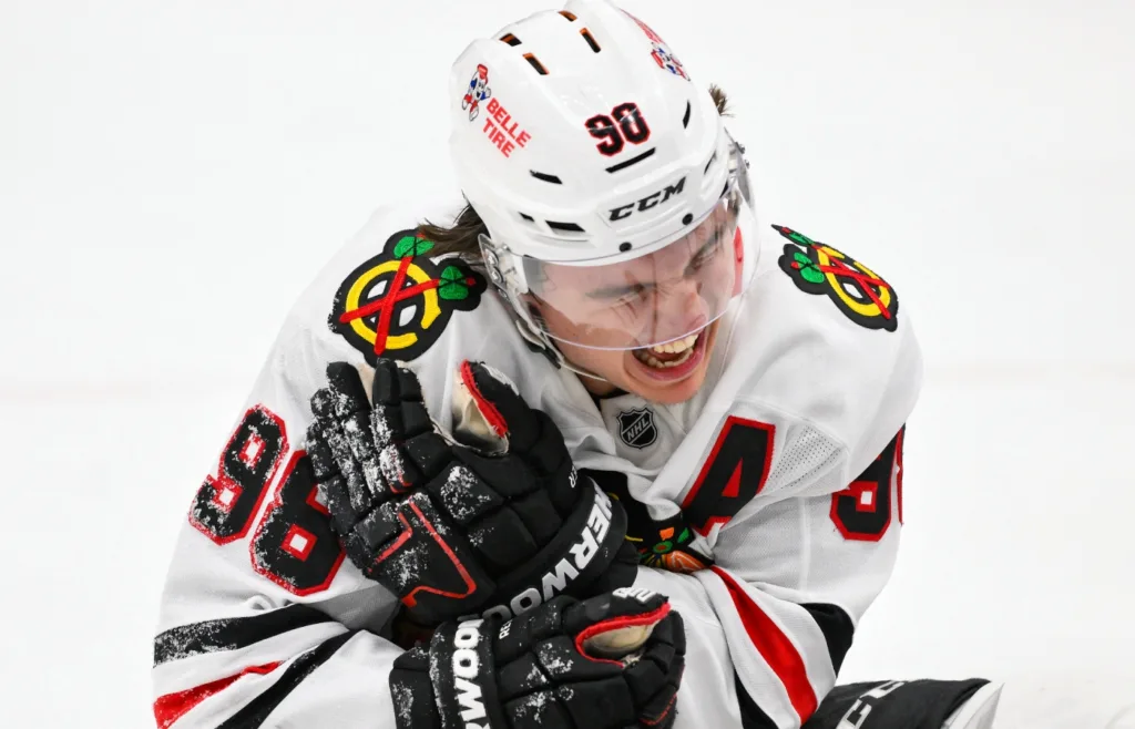 Han har burit Chicago Blackhawks den här säsongen. I natt klev Connor Bedard av skadad efter en märklig situation vid en tekning – med en sekund kvar av matchen.