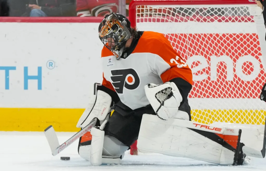 Det var när han talade med media på onsdagen som Philadelphia Flyers huvudtränare Rick Tocchet avslöjade att Samuel Ersson hade ”sträckt” någonting under uppvärmningen och betraktas som dag-till-dag.