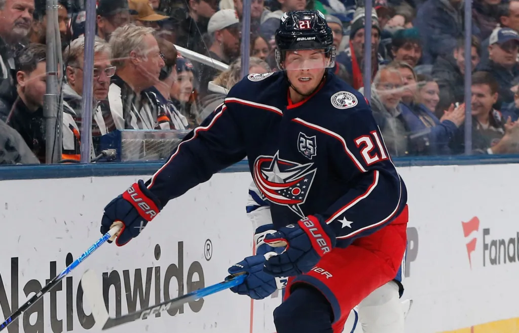 Isac Lundeström kunde ha gjort comeback för Columbus Blue Jackets i natt – men ställdes utanför laget. Foto: Russell LaBounty-Imagn Images
