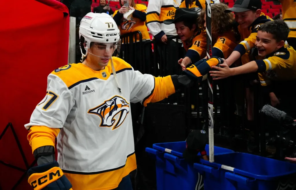 Luke Evangelista och Nashville Predators är slutligen överens om ett nytt kontrakt. Foto: James Guillory-Imagn Images
