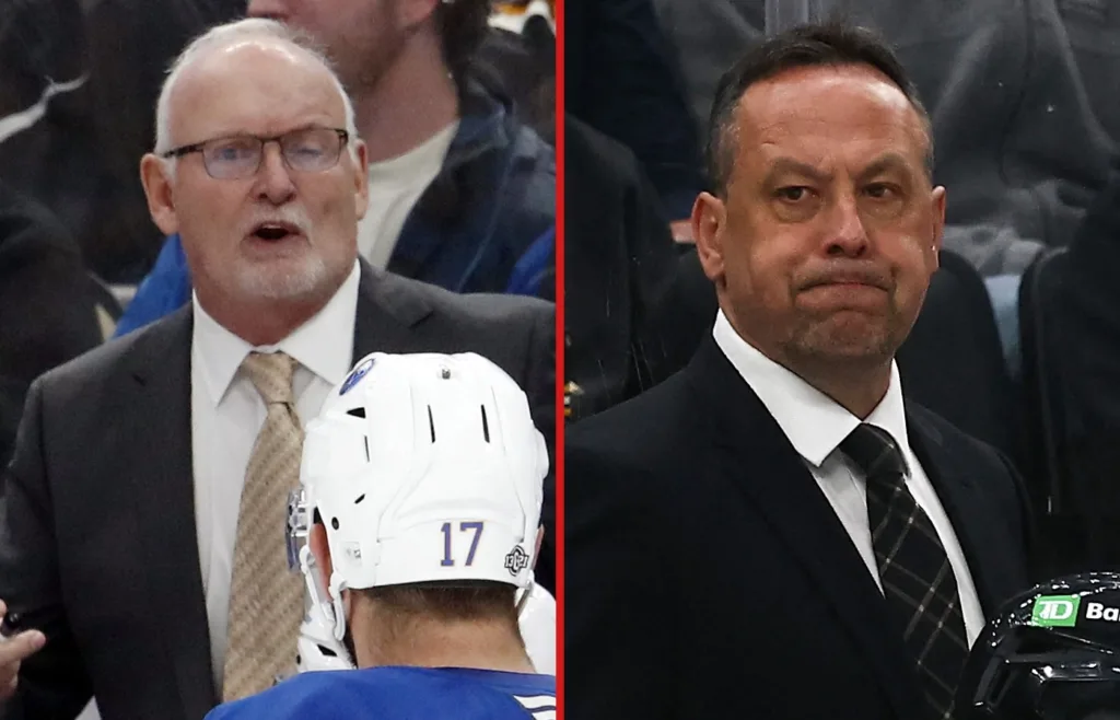 Lindy Ruff och Marco Sturm – en veteran mot en rookie – är duellen i båsen. Foto: Bildbyrån/Imagn Images