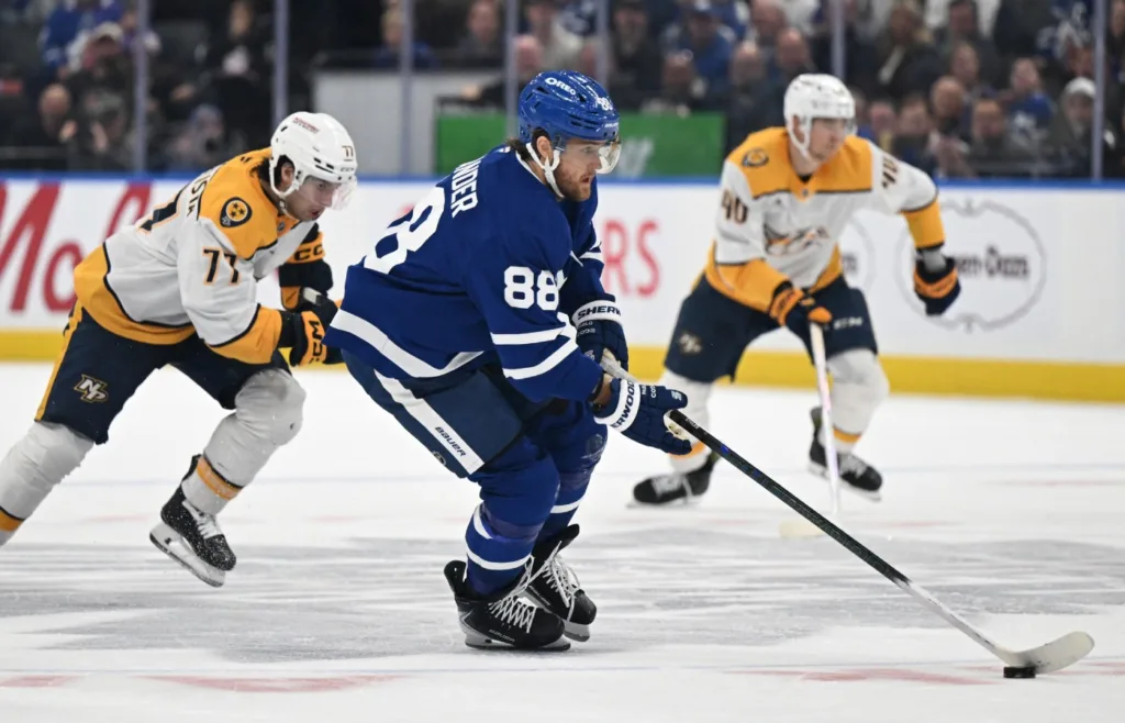 Toppforwarden Mitch Marner är borta. Mer än 20 minuter per match, inklusive spel i båda special teams, är borta. En poängspelare med 102 poäng är borta. Lagets femte bästa poängplockare genom tiderna är borta. En framstående ledare i omklädningsrummet är borta. Nylander, 29, är nu ganska tydligt Leafs näst bästa spelare efter Auston Matthews. Förväntningarna har förändrats.