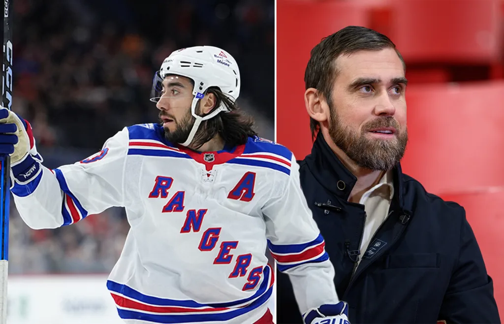 Mika Zibanejad kliver förbi Henrik Zetterberg under 3–2-segern med New York Rangers. Endast sex svenskar har nu gjort fler mål i NHL – någonsin.