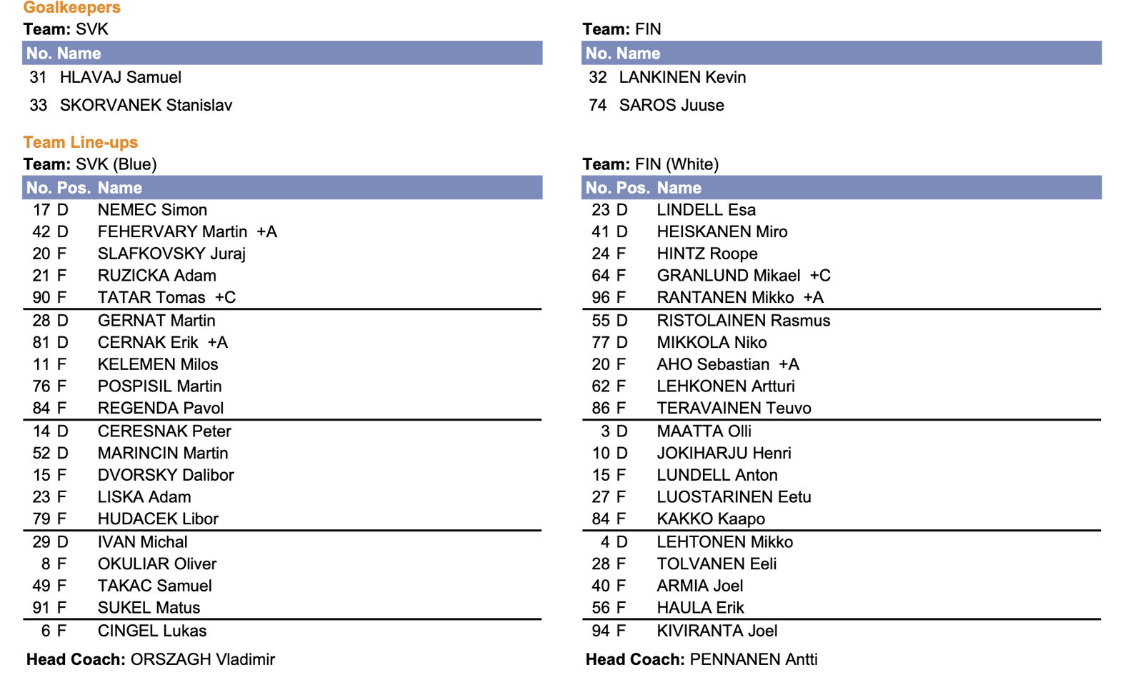 Detsamma gäller den tidigare Timråforwarden Oliver Kapanen, som får se matchen från läktaren.