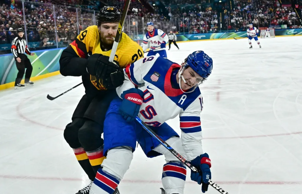 Under söndagens OS-match mellan USA och Tyskland hamnade USA:s bröder Brady och Matthew Tkachuk i en het ordväxling med den tyske forwarden Leon Draisaitl.