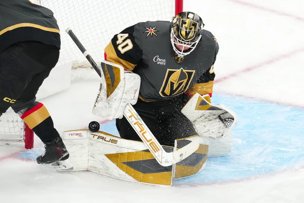 Akira Schmid har gjort 29 matcher för Vegas Golden Knights i NHL denna säsong.