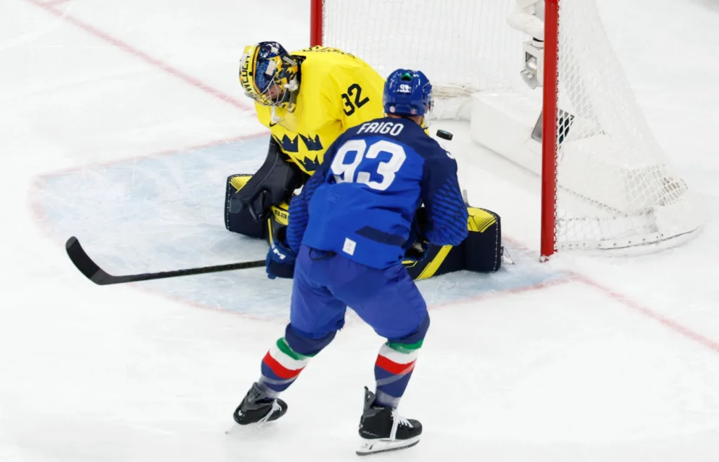 Sverige mot Italien i OS-premiären och många hade räknat in en blågul storseger. Då inledde Italien med att chocka Tre Kronor. Vad som såg ut att vara en harmlös dump blev till 1-0 för hemmanationen.