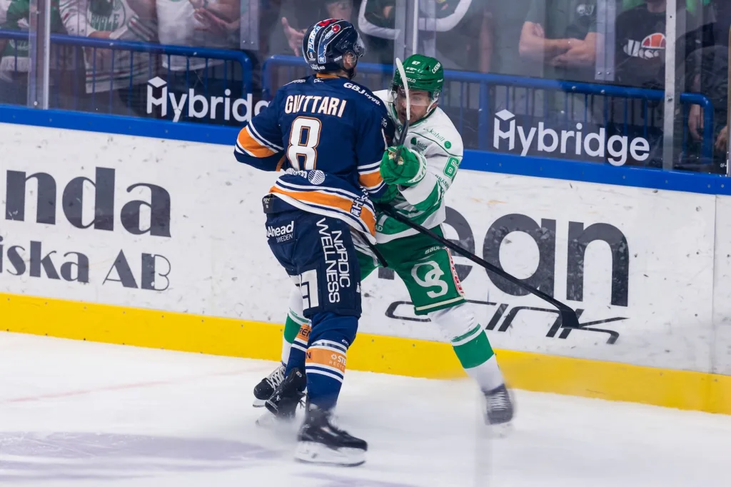 Växjös Zachary Giuttari och Brynäs Luke Witkowski stod för varsin huvudtackling i går.