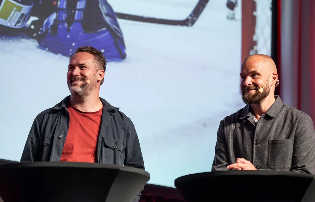 Johan Ekberg och Sanny Lindström under SHL:s upptaktsträff.