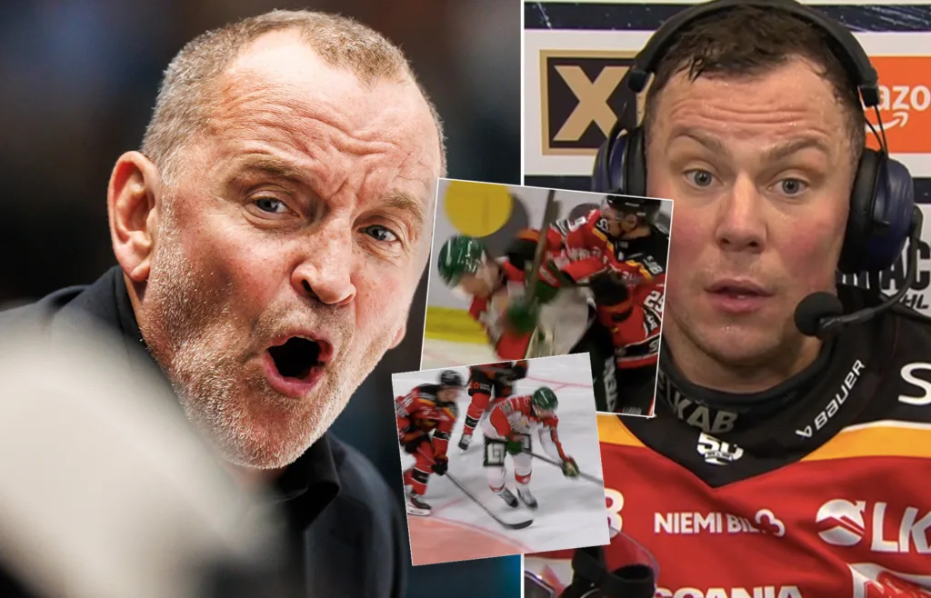 – Det var direkt efter tekning, pucken hade spelats därifrån. Det är två tuffa utvisningar som Luleå åker på som gör det här fem mot tre-spelet för Frölunda. Det är ett högerslag, men det är mot hjälmen, fortsätter Lindberg sju (!) sekunders spel senare när Gustafsson slår näven i Erik Thorells hjälm.