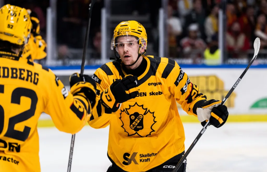 Skellefteå leder med 3-1 efter två perioder efter att Emil Djuse utökat ledningen.